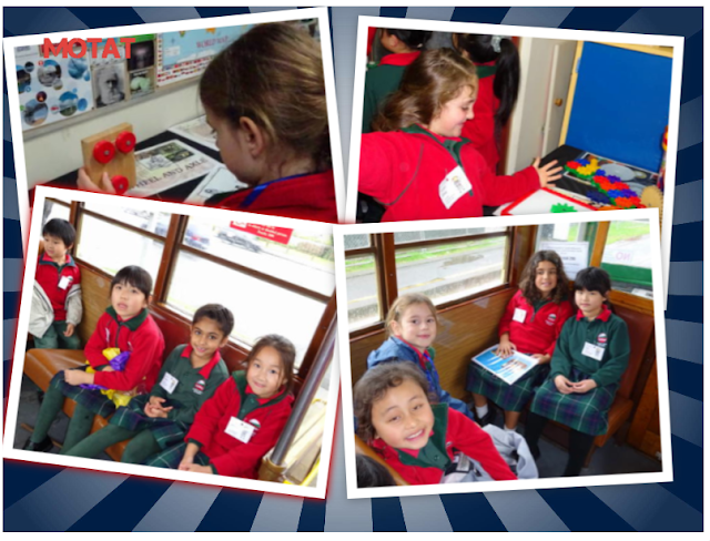 When we arrived we had morning tea and then went to the classroom to explore a variety of mechanisms and magnets. It was lots of fun using the equipment and finding out how everything worked. After that we went on a group trail around Motat with our parent helpers and then had lunch. After lunch we continued to explore the exhibitions and then went to their new areas called , 'Welcome to the Machine' and 'Get Smart'. The children really enjoyed working with the machines. Finally we went on a tram ride and then boarded the bus and returned to Point View School.