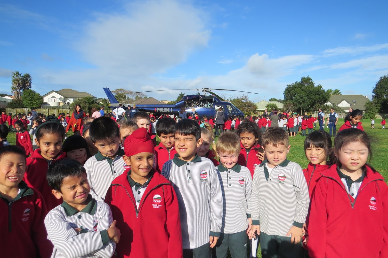 The police helicopter came and we saw it on the school field.