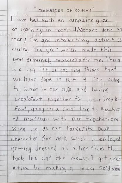 Aveer wrote about his "Memories of Room 4'. He also worked on his maths activities and his spelling skills.