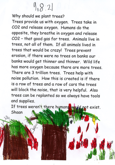 We have being finding information about why we should plant trees. The students wrote about their findings.