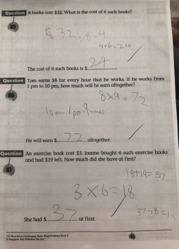 Aveer worked on some addition and subtraction number combinations and he also did some problem-solving tasks.
